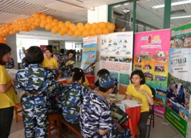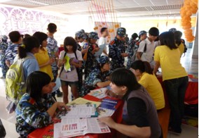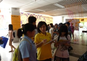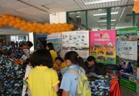我们的咨询点引来众多学生的注意及咨询                   学生们正在咨询侨谊动感夏令营的相关细