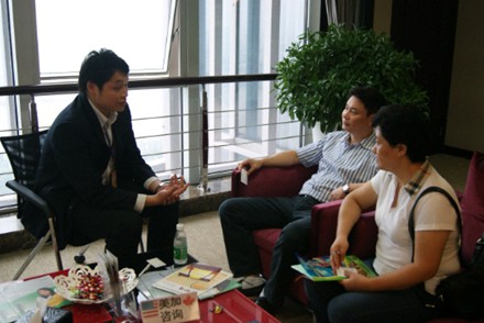 侨谊留学美加部资深留学顾问梁曦老师在与家长做一对一的留学咨询