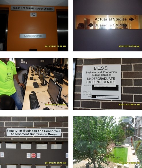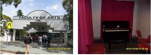 第四天(2010年12月7日周三),我们前往Macquarie的Faculty of Arts参观,并欣赏了以往毕业生的一些佳作。Faculty of Arts是全校第二大的Faculty,有超过6400个学生,包括约4900个本科生,约1000个研究生和约500个HDR学生,国际学生比例为8%。学院由10个Department加上一个Law School组成,其中,Department of Ancient History全澳洲排第一位,Department of International Studies可提供实习机会,Department of Media, Music and Cultural Studies也处于全国领先地位,Department of Sociology为将来的policy makers提供系统的培训。学院有“Peer Assisted Study Scheme”向学生提供学术上的帮助。