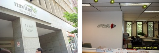 当天下午,我们在Macquarie International员工的带领下乘坐地铁(两个站)前往Macquarie City Campus。City Campus相对较小,就在马路边。在那里,我们听了SIBT校长给我们作报告。SIBT是1996年成立的,目前在校学生超过3600,75%为国际学生,学生的满意度为90%。SIBT于1997开始跟Macquarie合作,2008年开始有Diploma课程。Diploma of Electronic Engineering是一个新课程,有六个专业可供学生选择,读完后可直接入读Bachelor of Engineering的第二年(共4年)。Associate Degree in Business 也是一个新课程,共两年。读完第一年可直接入读大学二年级,读完第二年可直接入读大学三年级。Macquarie City Campus还提供foundation课程(MQCFP),有三个主流方向供学生选择,一年有3次入学(3、7、11月)。入读此课程IELTS需达到5.5(5.0 in each band)。
