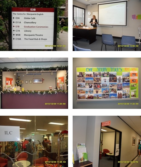 当天下午,我们来到了Macquarie的语言中心-CME(The Centre for Macquarie English)。CME已经有20年历史了,是Macquarie的一个Centre of Excellence(Macquarie有4个,全澳洲共有13个,ANU和Melbourne U都仅有一个)。这里是小班授课的,一班不超过18个学生。目前在读学生有3300多人,来自50多个国家。学生完成语言课程入读大学课程的成功率高达96%,比其他语言途径高11%。校园有雅思考点,语言课程可网上报名。中心还可提供one-on-one preparation教学,每小时120元澳币。