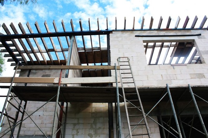还有一间正在建造的房屋,这里的房屋全部都是社区的人一同设计一同建造的。