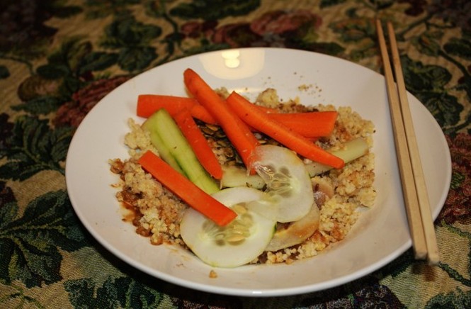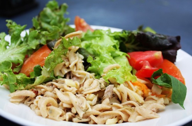 每天中午就是吃沙拉加一些面食,没有肉,想不到平时是食肉兽的瓜瓜还居然很适应这种饮食。