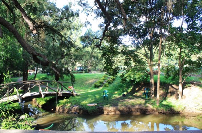 这是一种叶子很细,树干非常有韧性的树,他们在树上栓一条绳子,孩子们利用这条绳子在空中荡来荡去,然后跳进水里。
