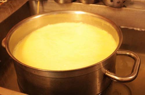 第二天我刚好赶上做酸奶的机会,其实很简单,先把挤好的羊奶煮热,然后放在冷水里降温,到了大概38度左右,加入酸奶剂搅拌,然后用毛毯包裹起来,发酵一左右时间就可以了。