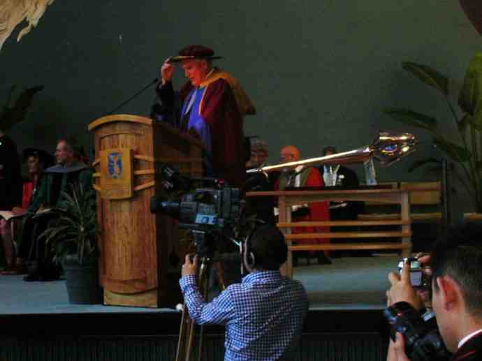 最后压阵的是黄袍加身的长者(校长),他是今天加冕仪式的主持人。