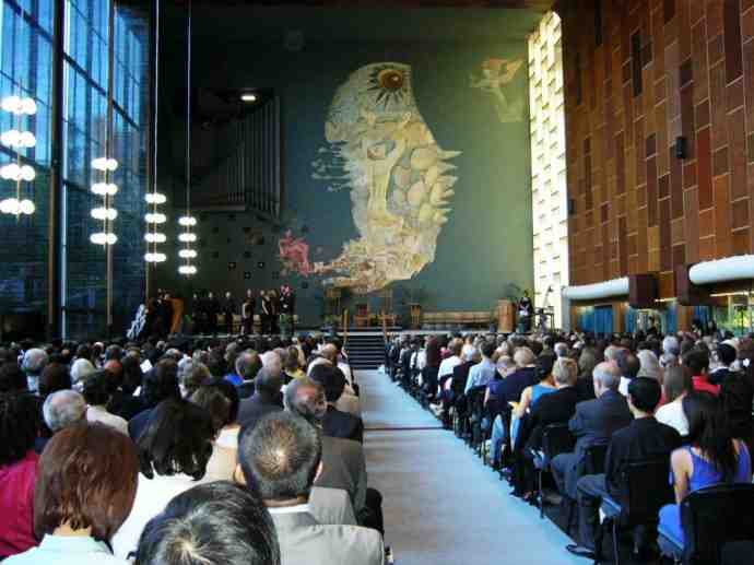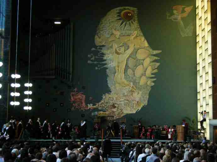 一切就位,全体起立,高唱颂歌,仪式开始。