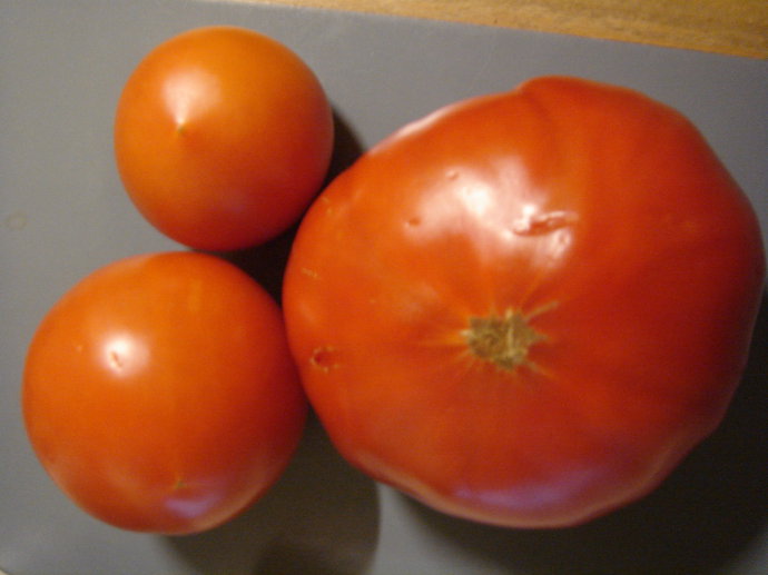 最大的这个,就是传说中的beef tomato了,哈哈,正常的牛肉番茄,跟其它两个比较,真的是很大呢,而且颜色也比较红,看来汁水也不错。