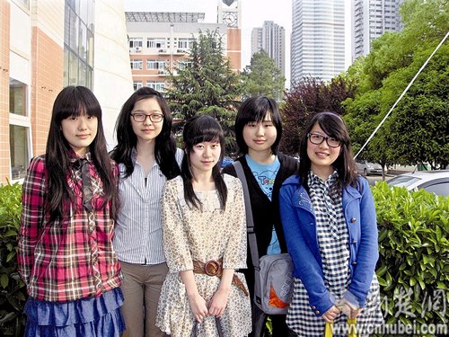 武汉外国语学校传来喜讯,该校高三年级一个女生宿舍的升学成绩令人惊叹:殷晓玥被美国耶鲁大学录取,获得120余万元人民币奖学金,邓歆怡被保送清华大学,徐娅子、康晓盈和胡希萌被保送北京外国语大学,还有两人分获武大和浙大自主招生资格。“七朵金花”都是读文科,同住女生“619”宿舍。消息传出,该宿舍被称为“武汉最牛女生宿舍”。昨日,记者见到其中5名“90后女孩”(如图)。她们热情活泼,有的时不时会冒出“悲剧”、“囧”这些流行语。寝室长康晓盈笑言:“我们偶尔也玩得很疯,有次晚上熄灯后违反规定开灯听歌,结果被管理员抓现行。”