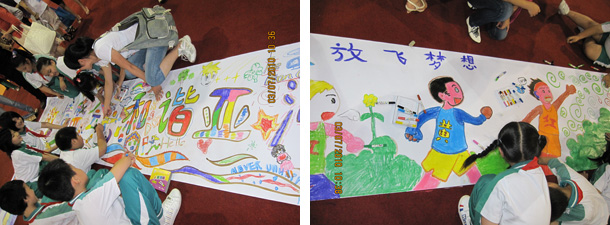 为我们打响头炮的是由广东教育学会、广州日报社主办,广州市青年文化宫和广州市第六十五中学教育集团共同组织的“放飞希望”广州市青少年共绘百米长卷活动。