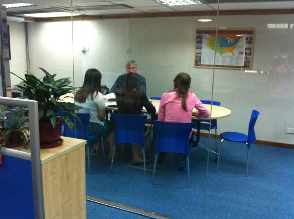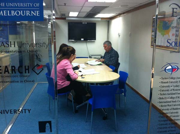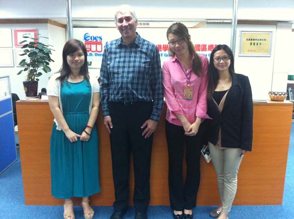 2012年10月15日上午,英国UK BOARDING SCHOOLS的校方代表Peter Norton Small来访侨谊留学,与侨谊留学留学中心副经理Vivian会面了解最新的院校动态。以下是Peter Norton Small和侨谊留学留学部副经理及两位顾问的合照及会面情形。