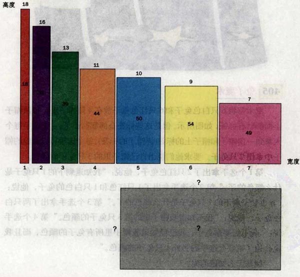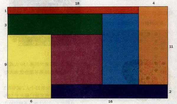 答案:可以用不可比的长方形拼出的最小的长方形的长和宽的比例是22 :13。这7个不可比的长方形的总面积是286个单位正方形。由于这个长方形的一边最小是18,而且边长必须是整数,就出现两个可能的比例:26 :11和22 : 13,我们这道题目的答案是第二种,它有更小的周长。