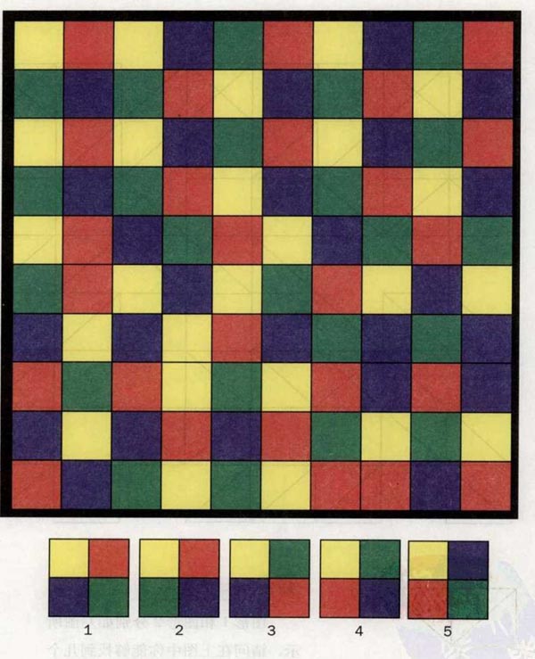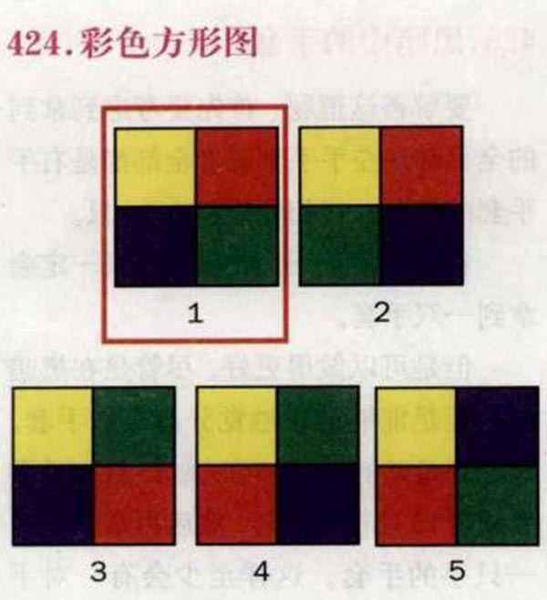 问题:编号1〜5的方形卡片中哪1张永远不可能在它们上方的图中找到?