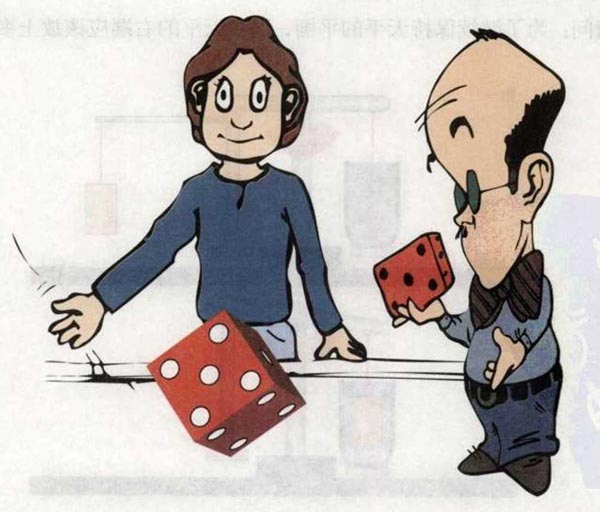 问题:你的朋友掷1次色子,然后你再掷1次。你掷的点数比你的朋友高的概率是多少?