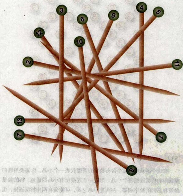 问题:木棍摆成如下图案,按怎样的顺序将它们拿开才能最终“解放”第12根棍子?记住:每根木棍被拿掉时上面不能压着别的木棍。