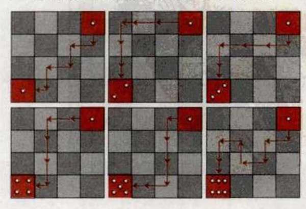 答案:从起点开始滚动色子,你可以使它最后在任何格子里以任何数字朝上。