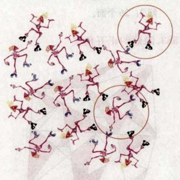 答案:两个舞伴的每个人都分别换了一次姿势。只有在两张照片中他们是变换了姿势的(也就是说,成镜像),其他照片中显示的都是他们在旋转。