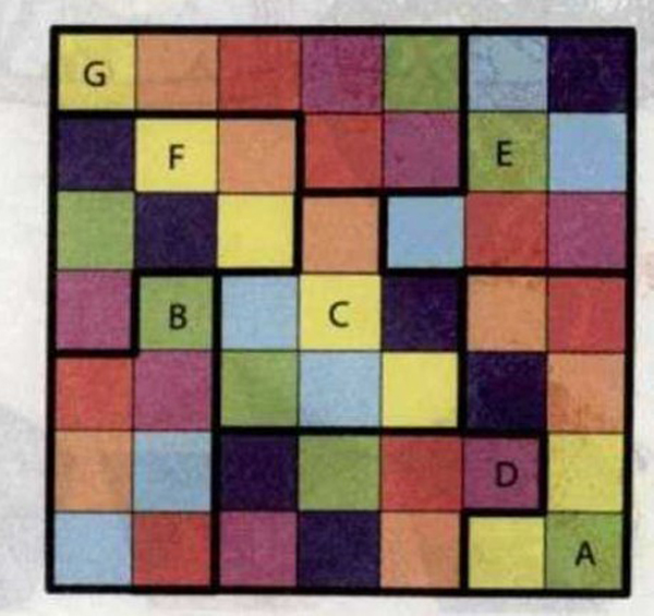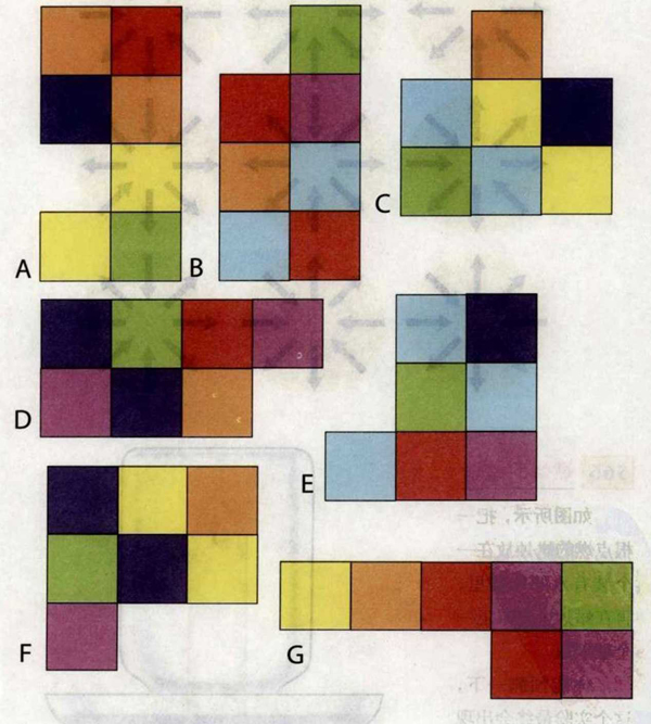 问题:你能将这7个图片组合成一个魔方,每一行、列都有7种不同的颜色吗?