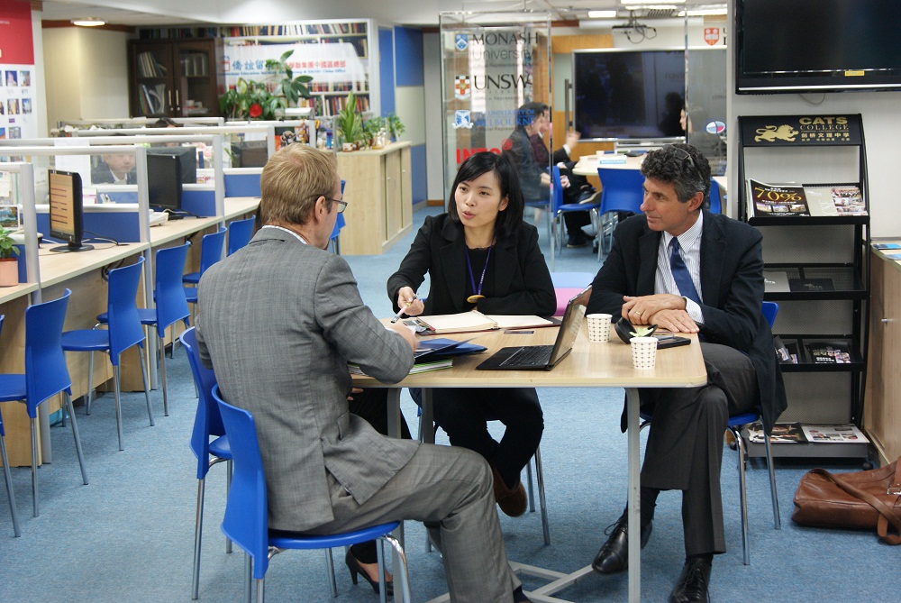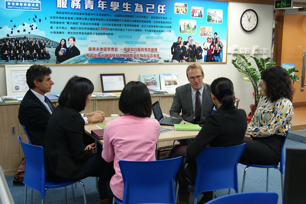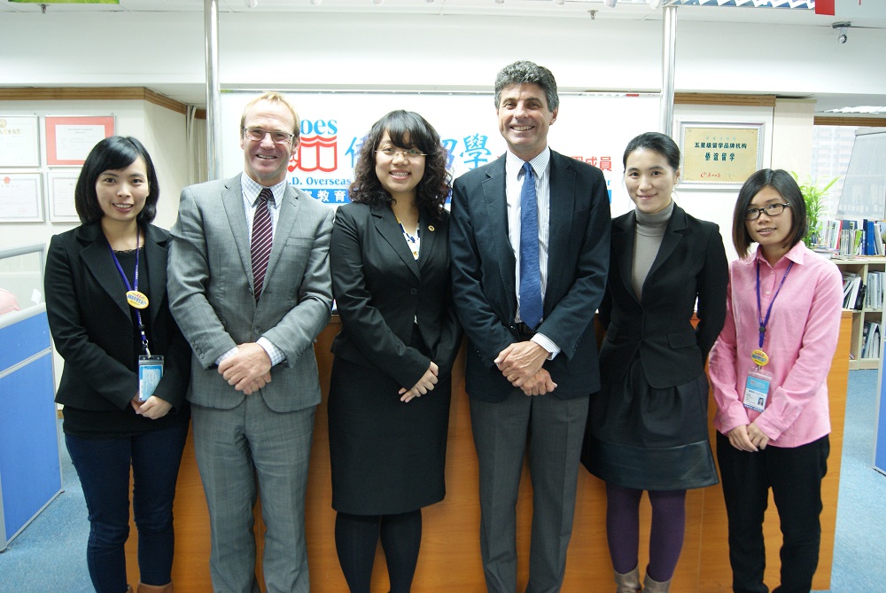 2014年3月7日星期五, 来自澳洲吉朗私立学校The Geelong College 的校长Mr. Andrew Barr和社区关系与发展部经理Mr. Mike Howell造访侨谊留学,为留学部顾问更新2014年学校最新的收生信息。
