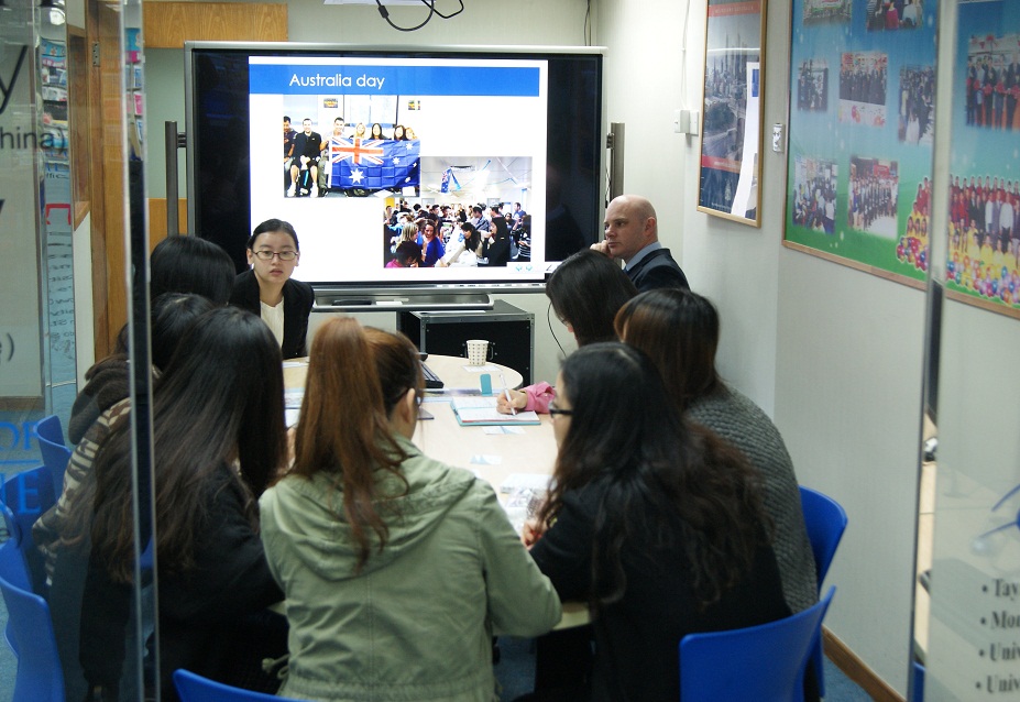 2014年3月10日,澳洲Sydney College oF English校长Adam Kilburn与招生经理Keyu Chen来访侨谊留学,他们为侨谊的澳洲顾问介绍了学校最新的收生信息。