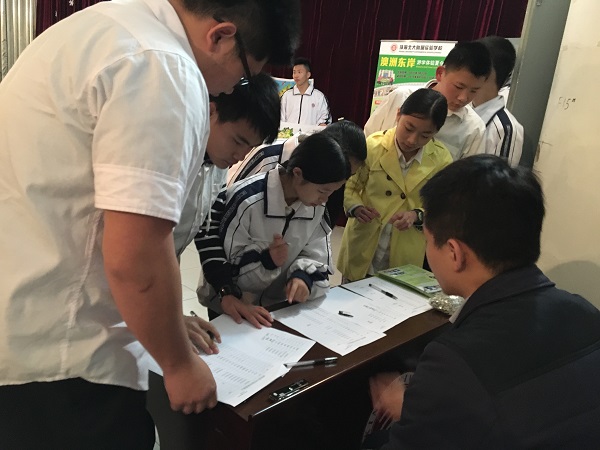 晚上17:00,我们侨谊留学的工作人员连同贵校的黄主任、Mr Dave外教及国际部同学们已经提早到达会场布置,与此同时,同学们晚饭后也迫不及待的赶过来,现场氛围高涨,同学们纷纷在前台签到及就坐等候夏令营的宣讲会开场。