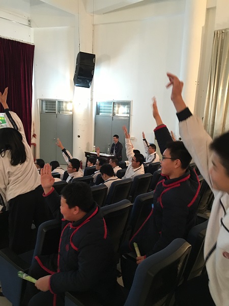 不知不觉已经到了宣讲会最后一个环节,黄主任特意邀请了珠海北大附中国际班高中部李东学长,为同学们讲解2015年参加美国乔丹篮球夏令营课程的情况,还有参加夏令营时的感想以及心得体会,使得在场的同学们如同身临其境,受益匪浅呢!
