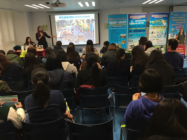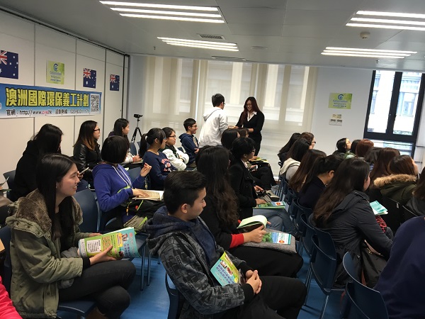 下午2点,由我们学联海外升学中心澳门分行的行政主任兼教育顾问Carrie Chao正式宣布,2016年度澳门大学之CVA澳洲环保义工宣讲会正式开始!随后,Carrie特意邀请我们学联游学中心副总干事Sophia Lau上台为我们同学们讲解CVA澳洲环保义工项目的基本概况。