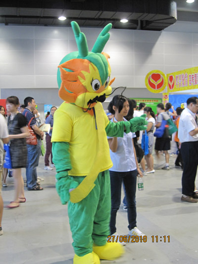 在场各校为了招徕考生的注意,派发宣传单张,环保袋礼包,更有甚者扮演起该校吉祥物公仔,成功吸引了许多学生和家长的眼球,宣传手法可谓层出不穷,场面极其火爆。